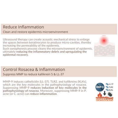 Ultrasound energy effectively suppresses MMP-9 to reduce chronic and intrinsic inflammation, which can rebalance connective tissue and promote dermal health.